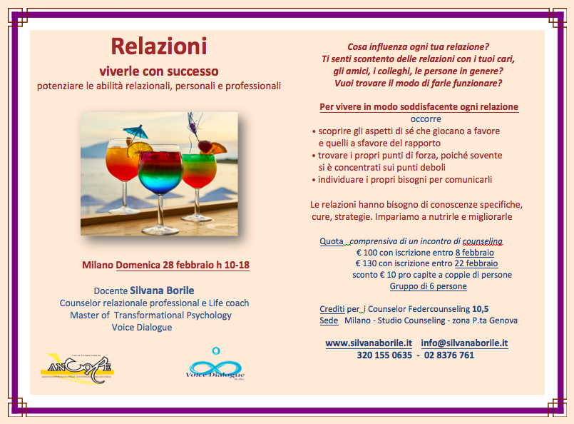 Informazioni e iscrizioni: www.silvanaborile.it info@silvanaborile.it Tel.: 320 155 0635 – 02 8376 761